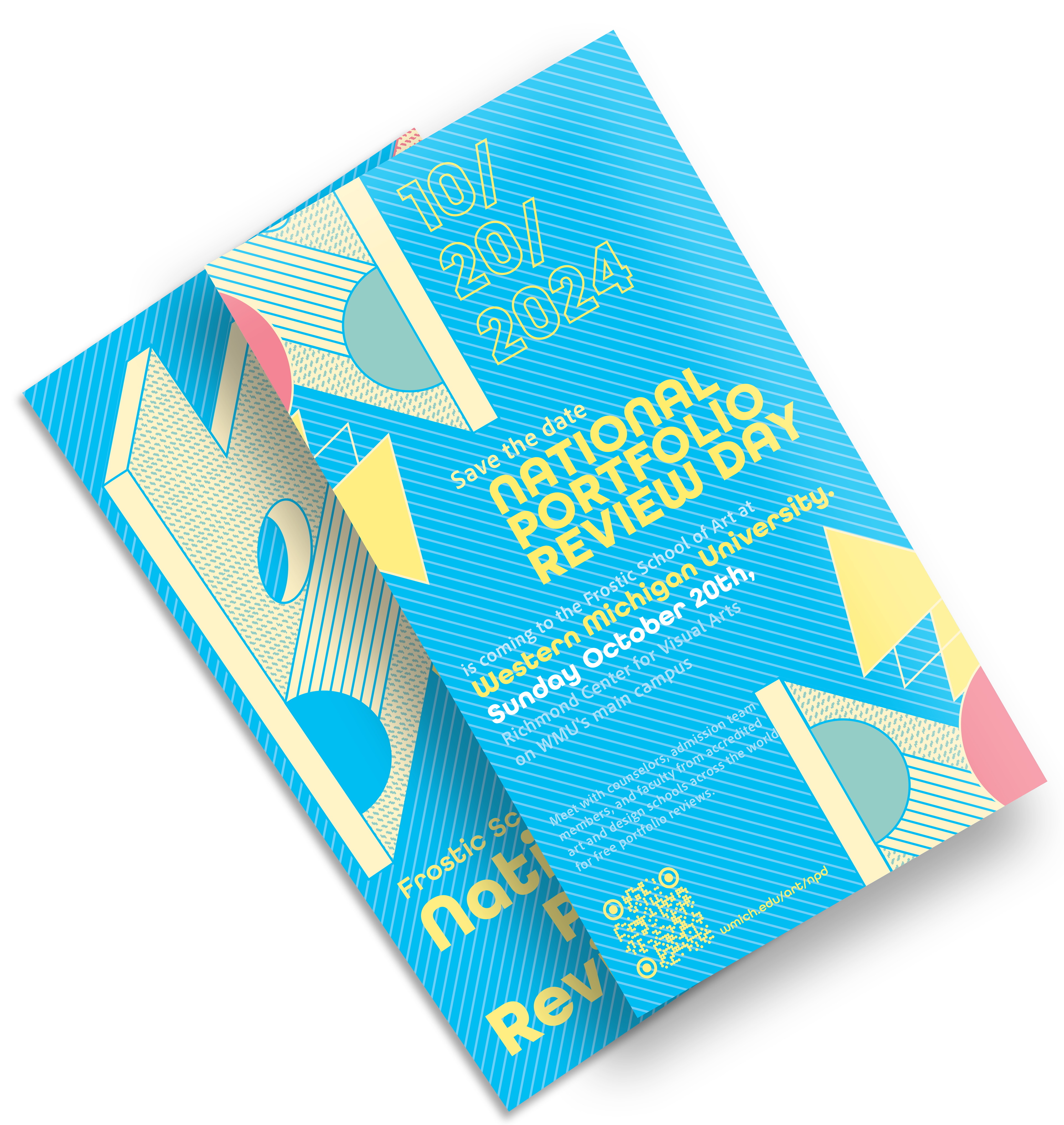 In employing warmer hues and minimalist shapes, the design aims to convey an inviting ambiance, fostering a sense of inclusivity and accessibility for all prospective attendees of WMU's National Portfolio Day review.